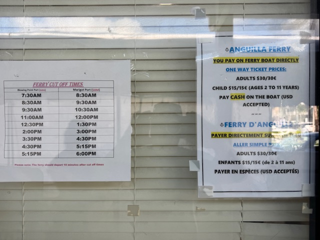 There are multiple ferry trips throughout the day between the two islands. We had to pay a departure tax at Marigot Port and get our passport stamped (an exit stamp) before we could board the ferry to Anguilla.