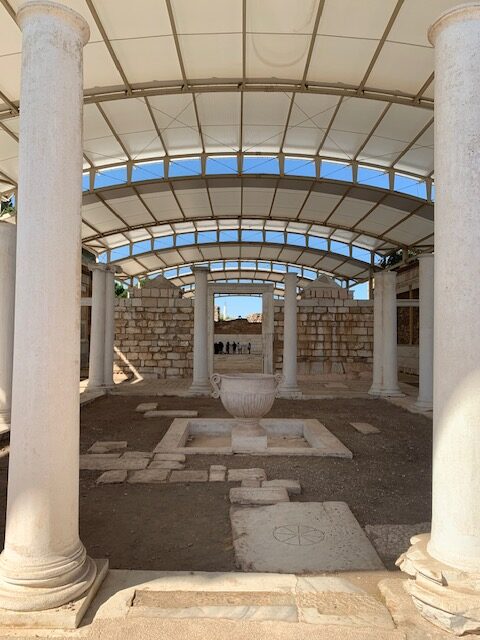There are two major structures that are worth seeing in the archeological site. These are the Synagogue and the Roman Bath-Gymnasium Complex. The Sardis Synagogue has a roof protection structure, marble columns, mosaic and marble flooring, ornamental fountains and decorative walls. This synagogue dates to the 3rd century CE and was one of the largest in the ancient world, reflecting the prominence and integration of the Jewish community in Roman Sardis.