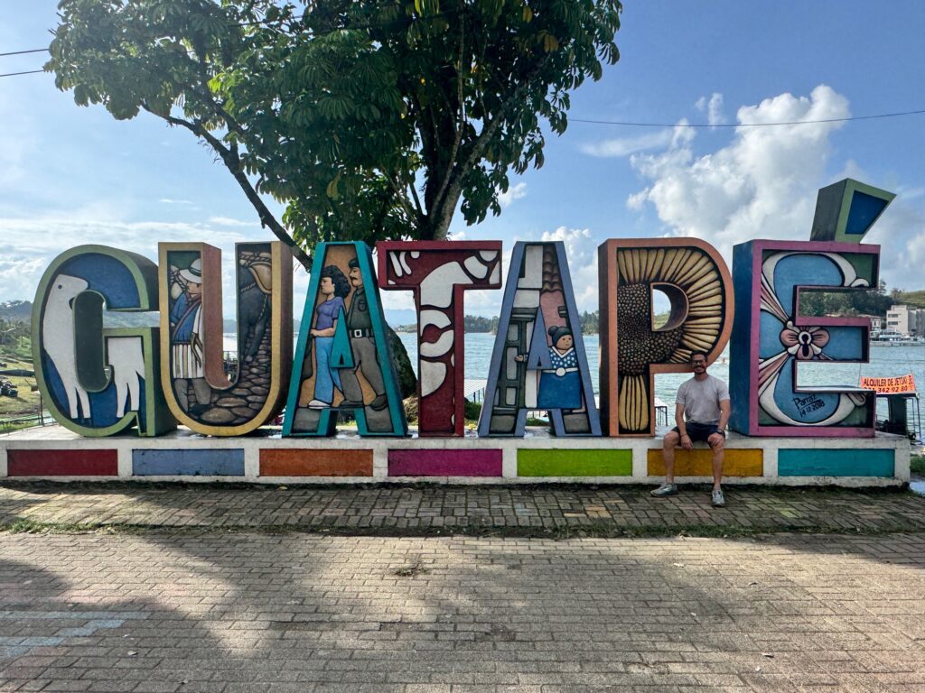 Guatapé is one of those rare places that actually lives up to the hype. The town is visually striking in a way you won’t see elsewhere in Colombia. A lot of the buildings are decorated with colorful, hand-painted bas-reliefs (zócalos) that tell stories of local life, culture, and humor. It’s not just “pretty,” it feels alive and intentional. Pair that with the surrounding landscape of the Embalse Peñol-Guatapé with its hundreds of small green islands scattered across its emerald water and you get a setting that feels almost surreal, especially in good weather.