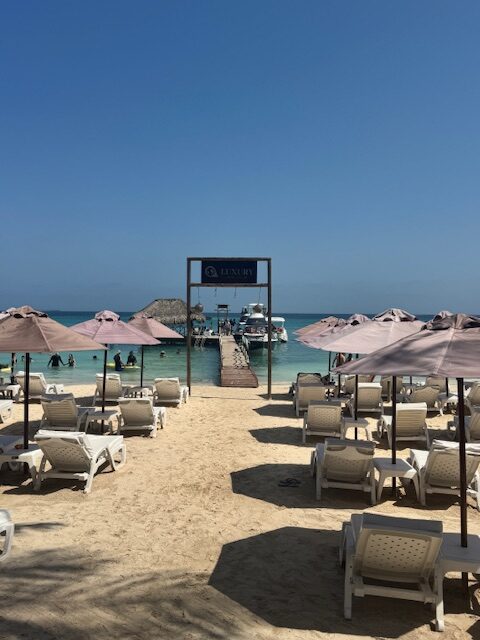 We chose to spend our two nights at Luxury Beach Club on Isla Grande. Luxury and Manta are the two beach clubs on the island that we noticed have a stretch of white sand beach. The other beach clubs did not.