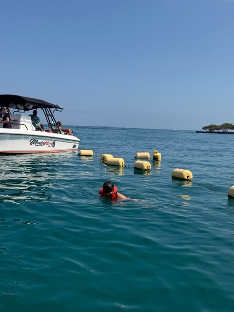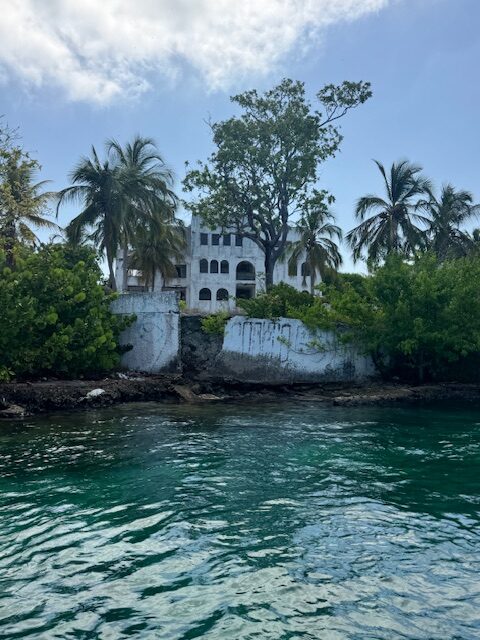 We signed up for a tour that included riding a boat around Isla Grande and making two stops. First stop was at the underwater wreckage site of Pablo Escobar’s plane (allegedly). The plane is about five meters deep but the water clarity was not great. We could not see the plane from the boat but became visible when we got into the water.