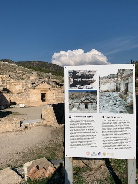 The site is huge but mostly in ruins. There are a few interesting structures that are still standing and worth spending time on. These are the necropolis, the Roman Gate and the theater. There is also the tomb of St. Philip, the Apostle.