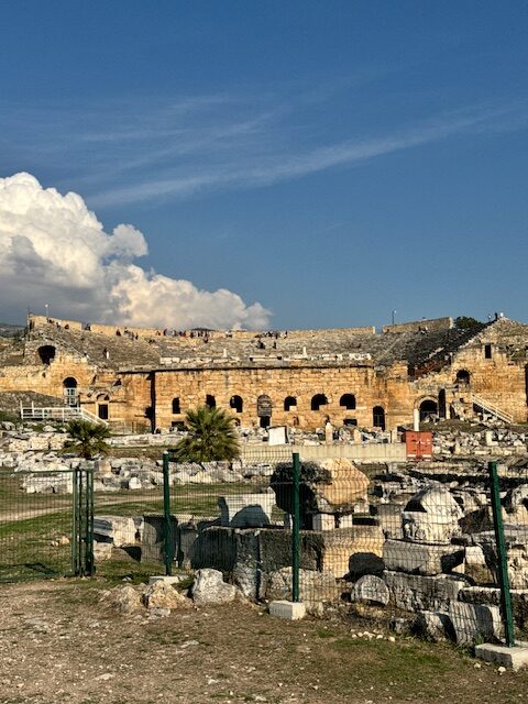 The Roman Theater at Hierapolis is a remarkably preserved 2nd-century structure. The theater was carved into the hillside, has ornate marble decorations and seats about 15,000. This theater is one of the largest we saw in Turkey.
