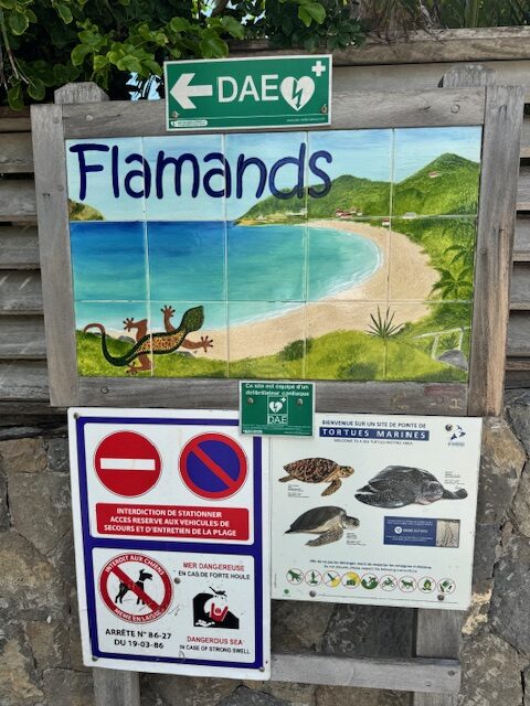 Flamands is located at the island’s northwestern tip.  The beach is long with very few people but the waves were big.  However, the water’s blue color is mesmerizing.  We saw a group of umbrellas at the far end belonging, most likely to a resort.  There are only a few places where a coconut tree would provide a shade, otherwise, you will be baking under the sun.  There is less than a dozen designated street parking for Flamands Beach.