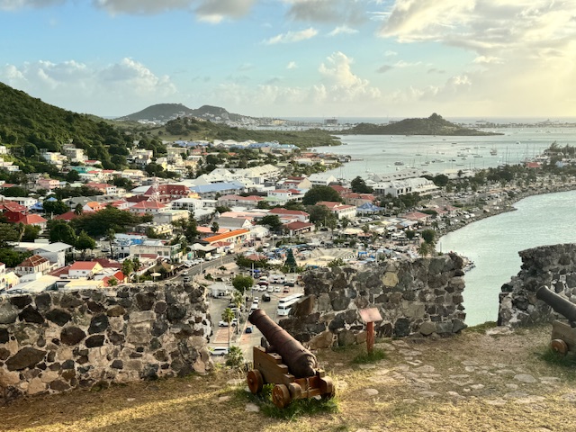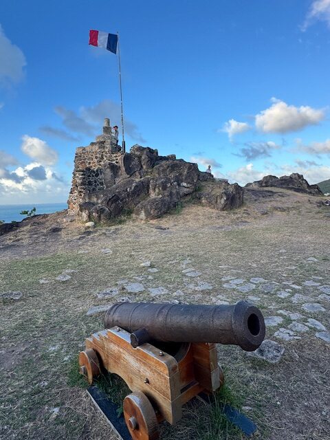 Fort Louis is in Marigot on the French side. The fort is located on top of a hill just above the mall and overlooks the town of Marigot. It is free to roam around the fort ruins which has a few rusty cannons, sections of the protective walls and a French flag whipping on a flagpole.