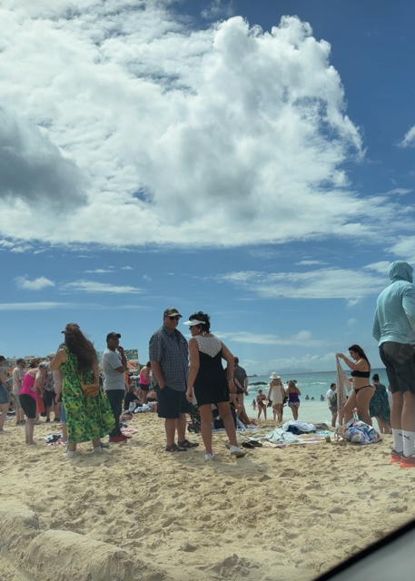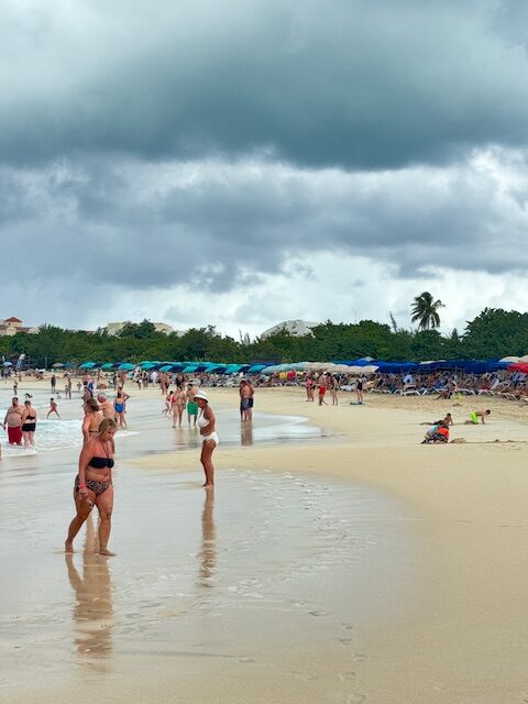 Maho and Mullet Bay Beaches are all on the Dutch side not far from the airport. Maho is at the end of the airport runaway so it is a very popular spot for watching the airplanes land and take off. Maho was packed, almost elbow to elbow. There are a lot of bars and restaurants nearby. Parking is only possible at a paid parking area (free if you patronize the bars and restaurants).