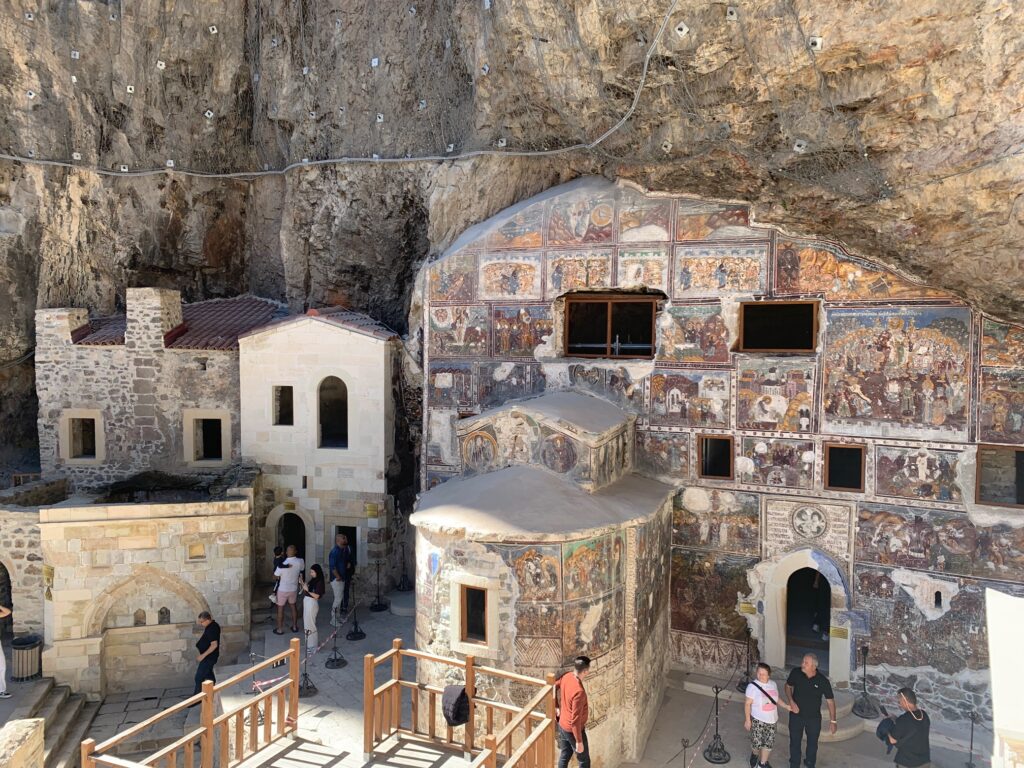 Sümela Monastery was the first stop of the tour. The monastery is less than an hour drive from Trabzon’s city center. Its buildings are made of stone and mortar and are precariously perched on the side of a mountain above a valley. The pictures shown on the Internet are what drew us to Trabzon.